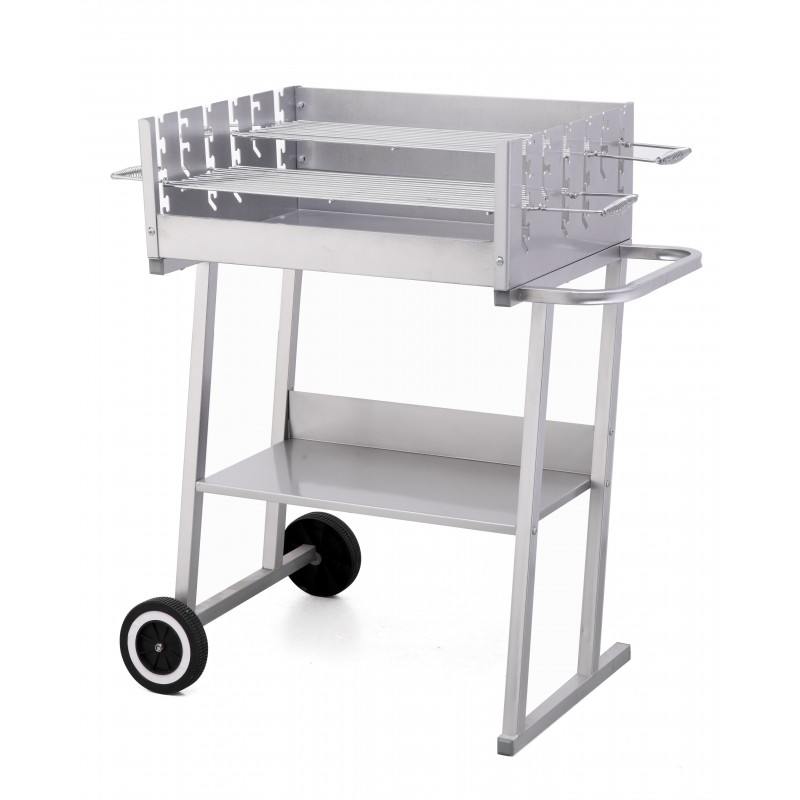 The "Pasadena" features a large grill surface that can easily feed several people. The "Pasadena" can be tipped to the side and rolled around, making it especially handy and convenient. This makes the product ideal for flexible BBQ fun. Whether on your patio or balcony - the grill cuts a fine figure everywhere. The chef has enough space on the shelf plate to hold drinks or food. The grill surface is divided into two grill racks meaning you can easily prepare different foods easily and conveniently. The windscreen, with its four-level grill rack adjustment, allows you to perfectly control the grilling temperature. Adjust the distance between the coals and the grill rack to change the cooking temperature to your food.