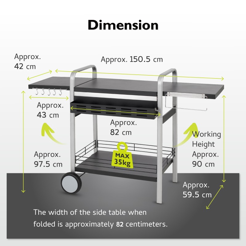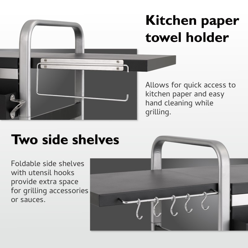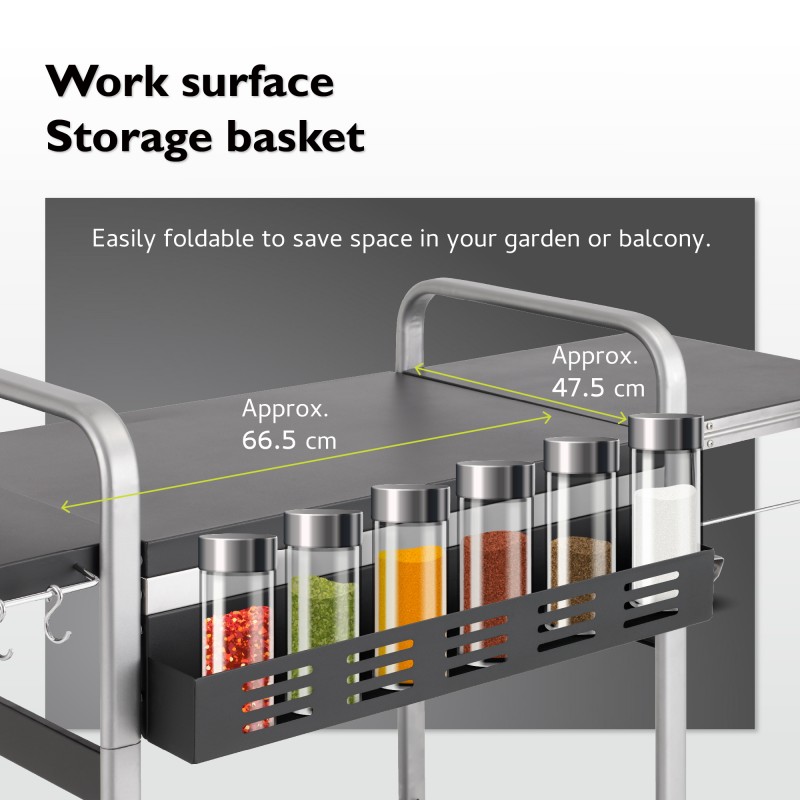 The stylish BBQ table is not only an eye-catcher, but also offers storage space for everything that is needed during the barbecue. Crockery, cutlery, spices, grill gloves and all accessories can be placed orderly on the BBQ table and this guarantees a pleasant grilling experience.